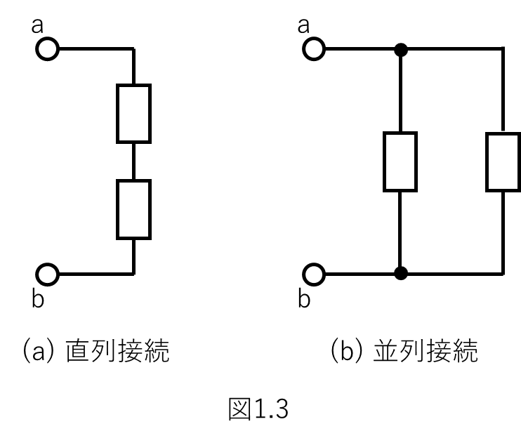 下図1.3にその例を示します。左を直列接続、右を並列接続と言います。